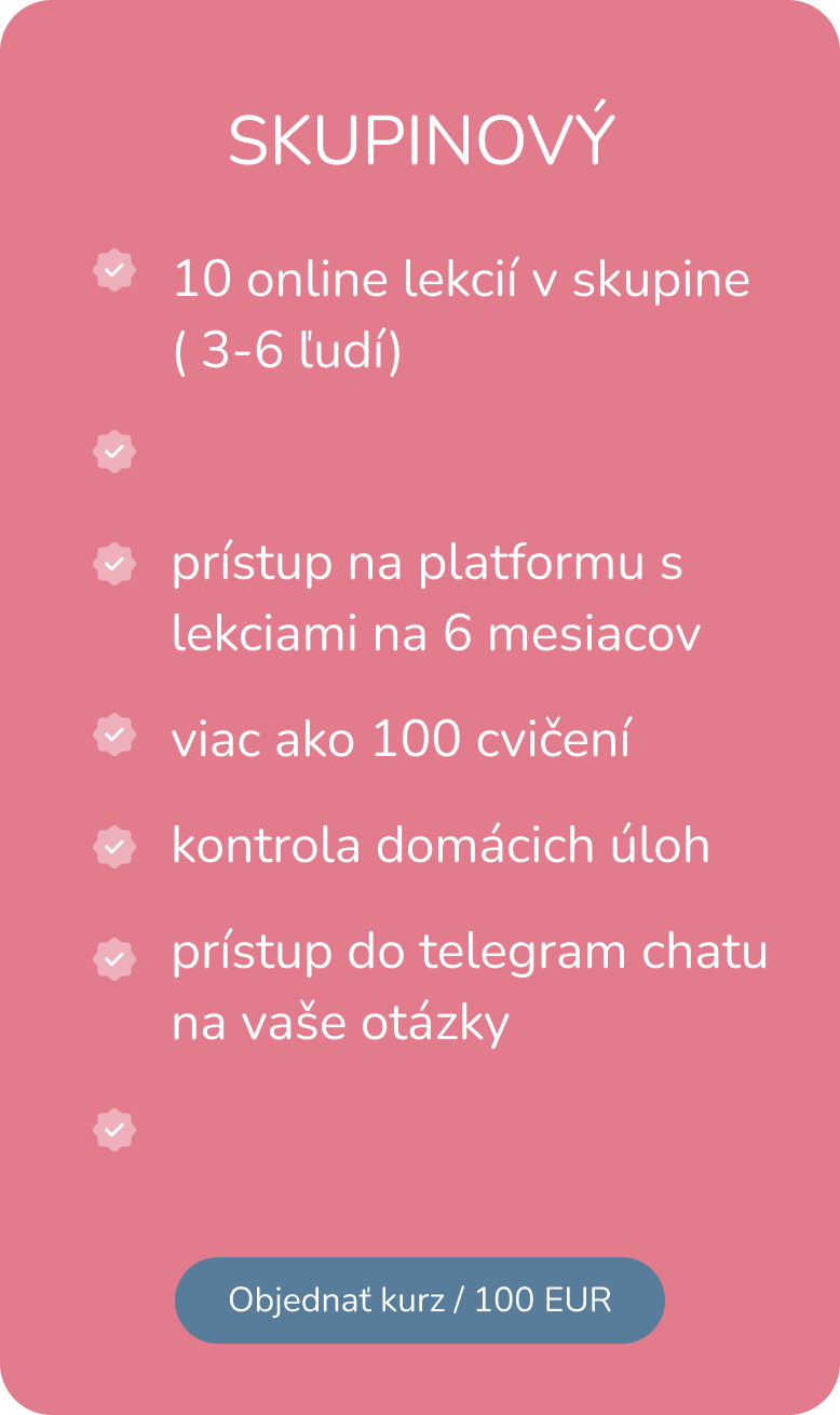Z dôvodu pretrvávajúcich sankcií voči krajine Rusko, je možná platba za kurz iba prevodom na účet. Ak máte záujem o tento kurz, napíšte mi na: